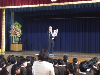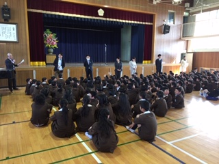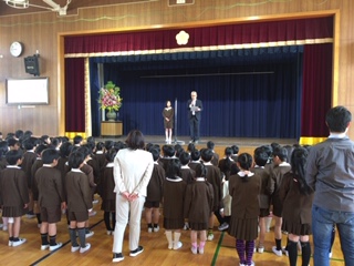 着任式では、新しく来られた先生方や管理作業員さん、給食調理員さんとあいさつをしてお話を聞きました。