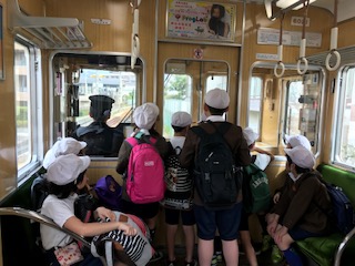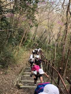 12日電車の車窓からは桜並木が見える、春の心地よい天気の中、5年生は、甲山森林公園へ遠足へ行きました。急な階段や坂道もみんなで「もう少し」「足元気をつけて」などと、励まし合いながら、無事全員甲山へ登山することができました。よくがんばりました。登山できた自信を、林間学習へと繋げていけたらと思います。