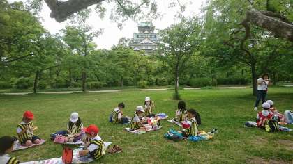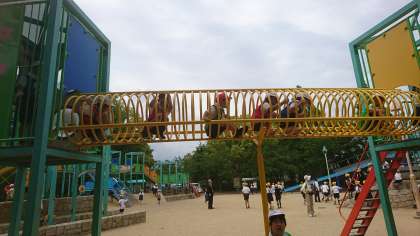 お弁当を食べた後は、森ノ宮駅の近くにある大型遊具で遊びました。