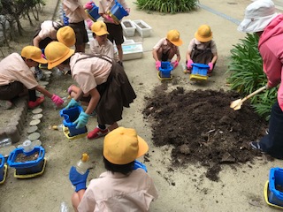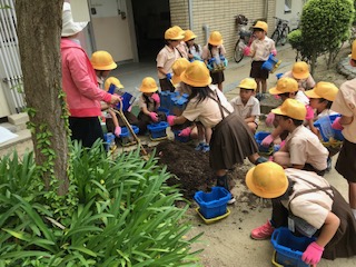 2年生が一人ひと鉢でトマトの苗を植えました。昨年は、アサガオをみごとに咲かせました。今年は美味しいトマトが太陽の光に輝くといいですね。楽しみです。