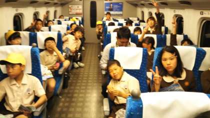 新幹線乗りました。早速おやつタイムに大はしゃぎのみんなです。