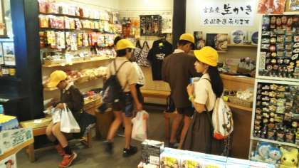 お楽しみの買い物です。いいお土産を一生懸命選んでいます。