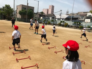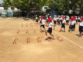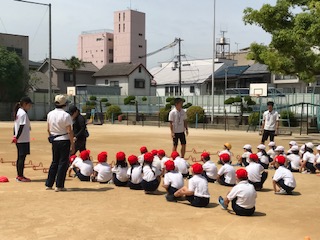 今日は、淀川区事業スポーツ出前講座「走り方」がありました。低中高で2学年ずつ、スポーツ授業専門の講師から、準備運動から速く走るコツ、トレーニング方法を体験的に学びました。暑い日となりましたが、低学年でも興味関心を高め、楽しみながら取り組めました。今後の体育や運動の成果につながるよう、日頃の運動に取り入れてほしいと思います。