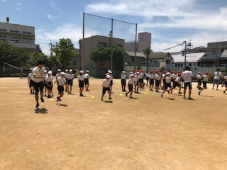 出前授業で、走るときの姿勢や足のつき方などのこつを教えて頂きました。おにごっこをしたり、先生と対決をしたり楽しく学習することができました。来月はスポーツテストがあります。習ったことをいかしてそれぞれよい記録がでるといいです。