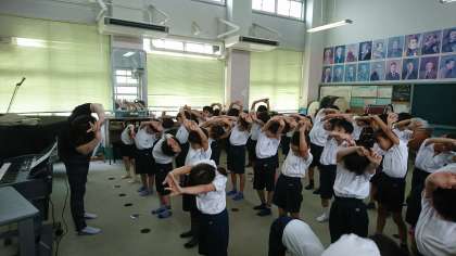 体育は合同で授業をすることが多いのですが、本日は音楽も合同でやりました。