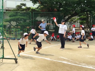 1年2年は、合同で50メートル走の記録をとりました。2年生は、昨年から2回目の経験。先生の「位置について、よーいスタート!」のかけ声に、すばやく反応していました。スタートダッシュも上手にでき、力強い走りを見せています。1年生もよく話を聞いて、2年の様子からしっかり学んでいます。初めてのスポーツテストにワクワクドキドキでがんばっていました。