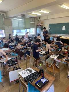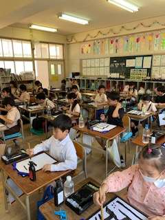太い線や細い線、好きなキャラクターの絵をかき、毛筆に親しみました。