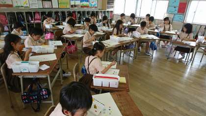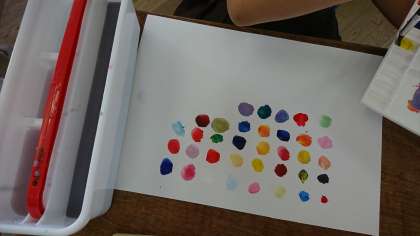 “先生、絵の具楽しい!”と、夢中になって色作りを楽しんでいました。