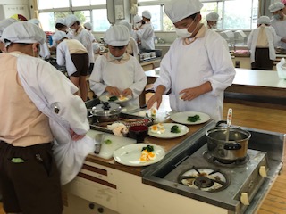 今日は、5年生が、はじめての調理実習をしました。ゆで卵とゆで野菜です。包丁をつかい、がんばっていました。表情もとてもキラキラしていました。