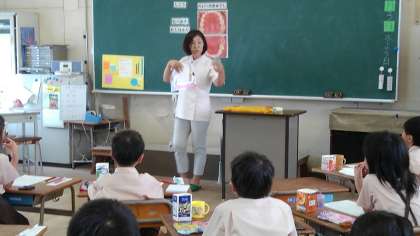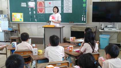 2年生で歯みがき指導がありました。