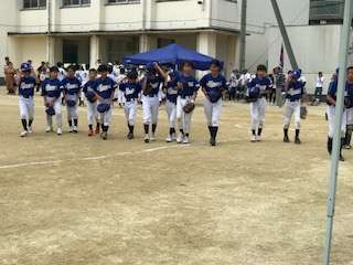 暑い中、熱い闘い、第1試合は圧勝しました。よかったですね。次も頑張って!監督さんはじめ、給水係や応援の保護者のみなさん、ありがとうございます。