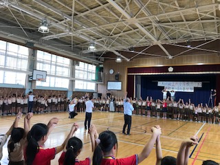 ゲームの後は、全員で輪になり手をつなぎ、いつまでも仲良くしようね、とばんざいをしました。