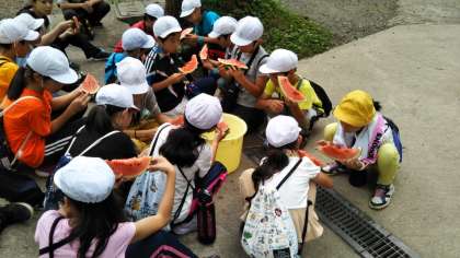 全員無事下山し、スイカを食べています。お疲れ様でした。
