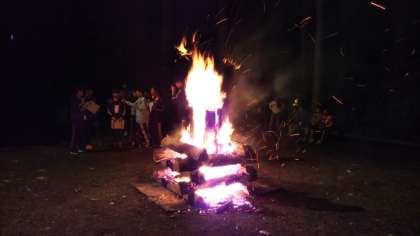 いよいよ、今日最後のプログラム、キャンプファイヤーが始まりました。みんなノリノリです。本日のホームページ配信は終了です。また、明日お楽しみに!