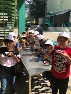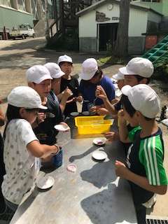 30分ほどで班でしりとりをしたり、歌ったりしながら、転がしました。全部の班のシャーベットが大成功!どの班も美味しそうに食べています。