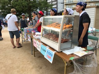今年も、チキンやフランクフルト、おにぎりがならんでいます。お腹がすいたら、このブースまで。