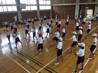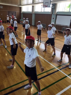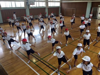 3・4年生は、エイサーの練習から始まりました。先行して練習を始めている4年生はさすがという感じで、堂々と踊って3年生のお手本となっていました。蒸し暑い中での練習だったので、こまめに水分補給して、体調に気を付けるようにしました。