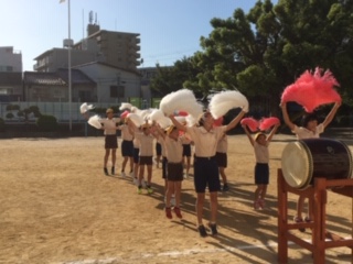 運動会本番まで10日となりました。運動場では、応援団の練習が行われて大きな声がこだましています。あと少し、最後までがんばれ。
