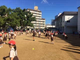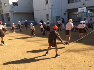 今日の集会は、大繩でした。「へび」「ゆりかご」「郵便屋さん」など、いろいろな跳び方にチャレンジしました。チャンピオンは、「郵便屋さん」を10枚まで跳んだ班でした。6年生が中心となって、優しく縄を回してあげていたのが印象的でした。