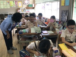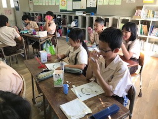 5年生が、歯垢染め出しをしました。歯と歯の間や歯の裏側、歯と歯茎の間に磨き残しがあることがわかりました。正しく歯磨きをし、虫歯や歯周病にならないようしたいです。