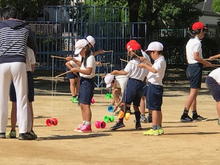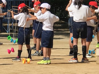 カラフルな中国ごま。簡単で楽しそうに見えますが、なかなか難しく、一生懸命に練習していました。