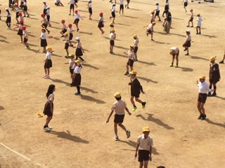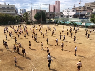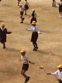 週2回、全学年児童が15分休みに運動場に出て、様々な跳び方にチャレンジしています。今日は、6年生の女子児童が、二重あや跳びのお手本を見せてくれました。縄を高速で回し、とても上手でした。皆さん、目標にして頑張って練習していきましょう。