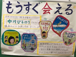 あす24日は、読書フェスティバルです。絵本作家、中川洋典さんを迎え、低、中、高学年ごとに、学年に応じたさまざまなお話をしていただきます。絵本作家の方に会える機会など、普通ではなかなか難しいものです。この機会に、本の魅力を子どもたちに知ってほしいと思います。保護者の方もご参加いただけますので、どうぞお越し下さい。