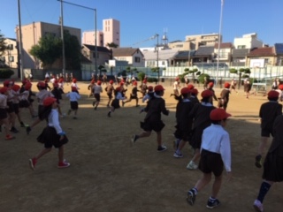 今日の集会は、ふえ鬼です。様々な学年や、委員会、先生たちが鬼となって追いかけました。少し肌寒い季節となってきましたが、遊び終えた子どもたちは、「ハアハア」言いながら、汗をかいていました。
