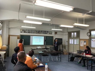 11月7日、中国から校長先生達の教育視察団をお迎えしました。本校の教育について、通訳を介しながら久保校長先生が説明しました。この後、校内の施設や授業、子ども達の様子を見学を予定しています。