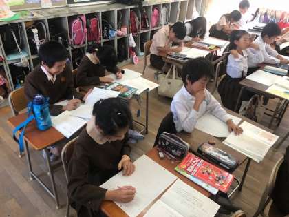 国語科の学習では、絵から想像した物語を書いています。素敵な物語になるよう、推敲しながら仕上げています。完成が楽しみです。