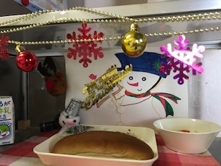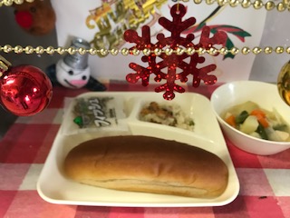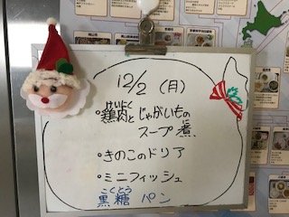 サンプルケースは、サンタさんやトナカイさんでワクワクします。12月はじめの給食はドリアがついて子ども達は大喜びしています。調理員さんありがとうございます。