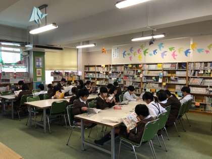 図書の時間では、まず、図書係のメンバーに、本の返却と貸し出しの作業をしてもらっています。その後は、それぞれ興味のある本を手に取り、自由に読んでいます。外の風の音が聞こえるほど、静かな様子で読むことができています。
