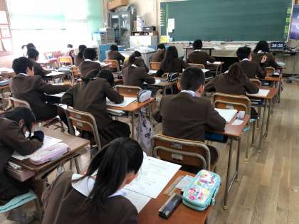 学力経年調査の2日目。まずは、算数です。集中して問題に取り組んでいます。