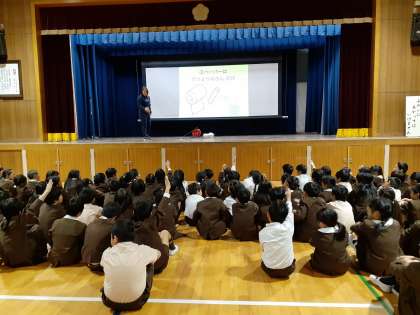 今日はみんなが気持ちよくトイレをつかうために気をつけることについて担当の先生からお話がありました。正しいトイレの使い方やマナーについてスライドを使ってお話してもらいました。よごしてしまったらどうしますか?トイレットペーパーの使い方はどうですか?ぬいだスリッパはきちんとならんでいますか?みんなが気持ちよく使うためには、ひとりひとりが気をつけて使うことが大切ですね。
