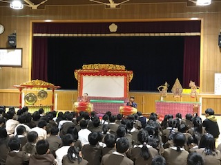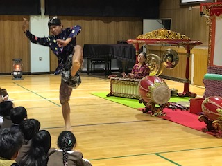 インドネシアの伝統芸能に触れる機会。伝統芸能団の方を招き、異文化芸能鑑賞と体験を持ちました。