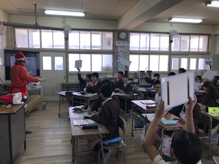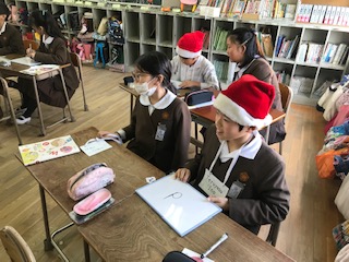 今日はクリスマスについて、クイズに答えながら楽しく学習しています。クリスマスのスィーツや食べ物、カラーなどを知ることができました。