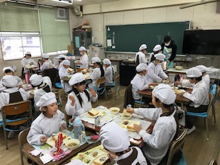 元気いっぱい楽しい給食 3年生です。おかわりもたくさんして完食です!