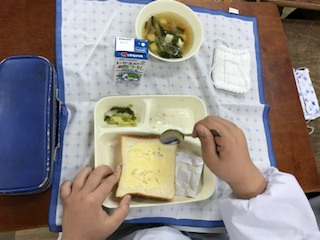 さすがに5年ともなると、バターをパンにつけるのもスマートにこなしています。まんべんなくパンに広げて、とても美味しそうなバター食パンの出来上がり!
