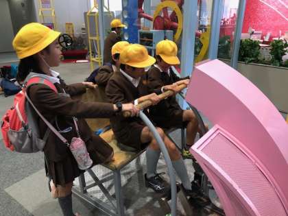 プラネタリウムを見た後、再び展示場の見学や体験をしています。グループで仲良く行動することができています。