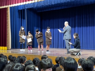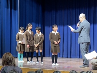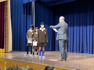 今朝の朝会では、校長先生からのお話の後、冬の俳句で入賞した人達の表彰がありました。作品は、どれも感性を十分に働かせたものばかりで、力作揃いでした。入賞した皆さん、おめでとうございました。