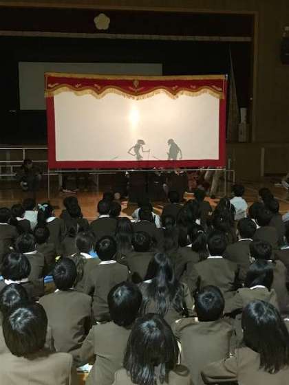 3・4年生がインドネシアの影絵を披露してくれました。セリフも自分たちで考え、上手に演じていました。