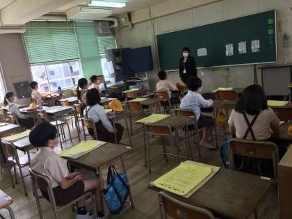 そのあと、クラスごとに手洗いの仕方や友だちとの距離のとり方などを学習したり、休校中の課題の答え合わせをしたりしました。