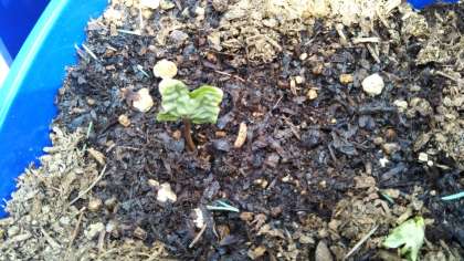 「次は、これが開いて、となりの植木鉢のようになるねんで」と言っていたら、次の瞬間、ぱかっと双葉が開いたのです。もう、びっくり!