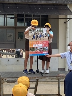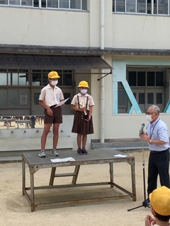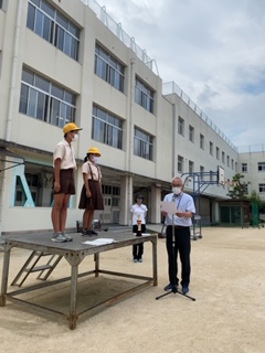 久しぶりに、運動場で児童朝会を行いました。ソーシャルディスタンスをとりながら、まず、校長先生から広島、長崎に原子爆弾が投下されたことや平和を大切にすること。様々な状況下においても、落ち着いて、よく考えて行動することなどについてのお話などを聞きました。