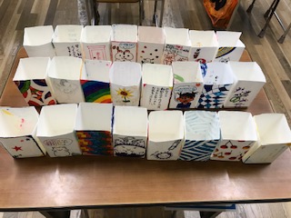 コロナウイルスの収束を願って、灯篭造りをしました。1日も早くマスクをつけずに過ごせる日が来るといいです。それまで、子どもたちとともに、手洗い消毒、換気をし、人との距離に気をつけながら学校生活を送ります。