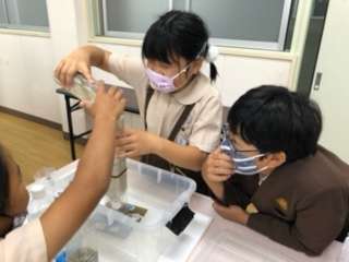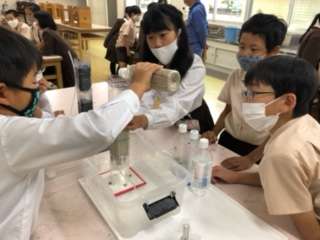 3時間目には映像学習や濾過実験を行い、水がきれいになる仕組みについて詳しく学習しました。水が徐々にきれいになっていく様子に子どもたちは「おぉー!」「すごい??」などと歓声をあげていました。