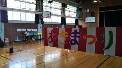 2,3時間目に講堂で秋まつりをおこないました。