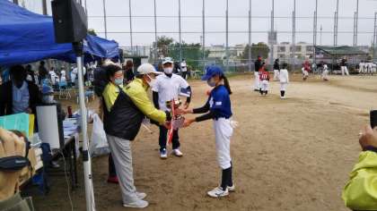 1回戦、新高小学校に5対0で快勝しました。試合後、昨年度の準優勝カップを返還しました。
