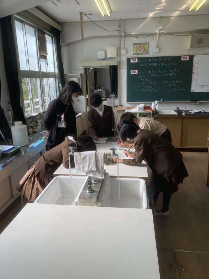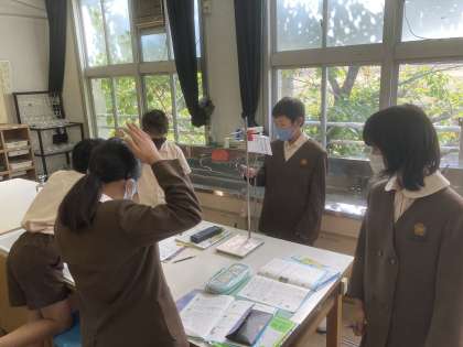 5年生は理科で「ふりこのきまり」を学習しています。班で協力して実験しました。ふりこが1往復するのにかかる時間は、ふりこの長さと関係があることが分かりました。
