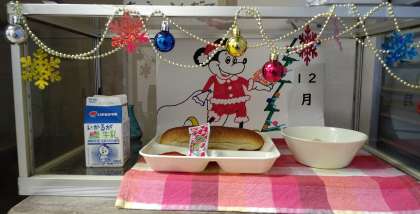 給食室の献立を紹介するコーナーもクリスマス仕様になりました。